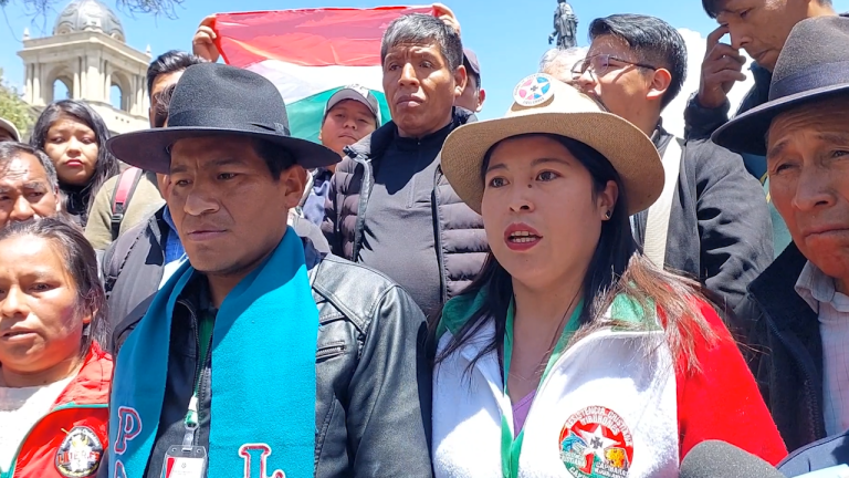 “Estamos en Plaza Murillo para hacer conocer que los únicos representantes de las 20 provincias somos los que estamos acá presentes”, declaró una de las integrantes. Durante su aparición, también lanzaron críticas al MAS, partido al que acusaron de intentar sumarse al proyecto político a cambio de “pegas”.