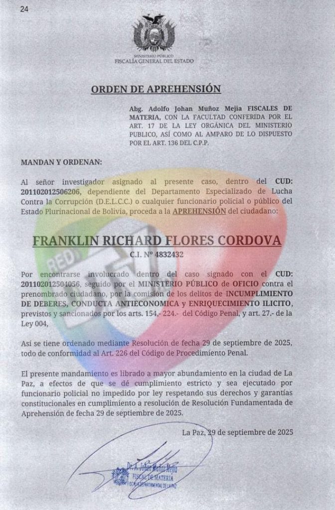 Orden de aprehensión para Franklin Flores / Foto: DTV /